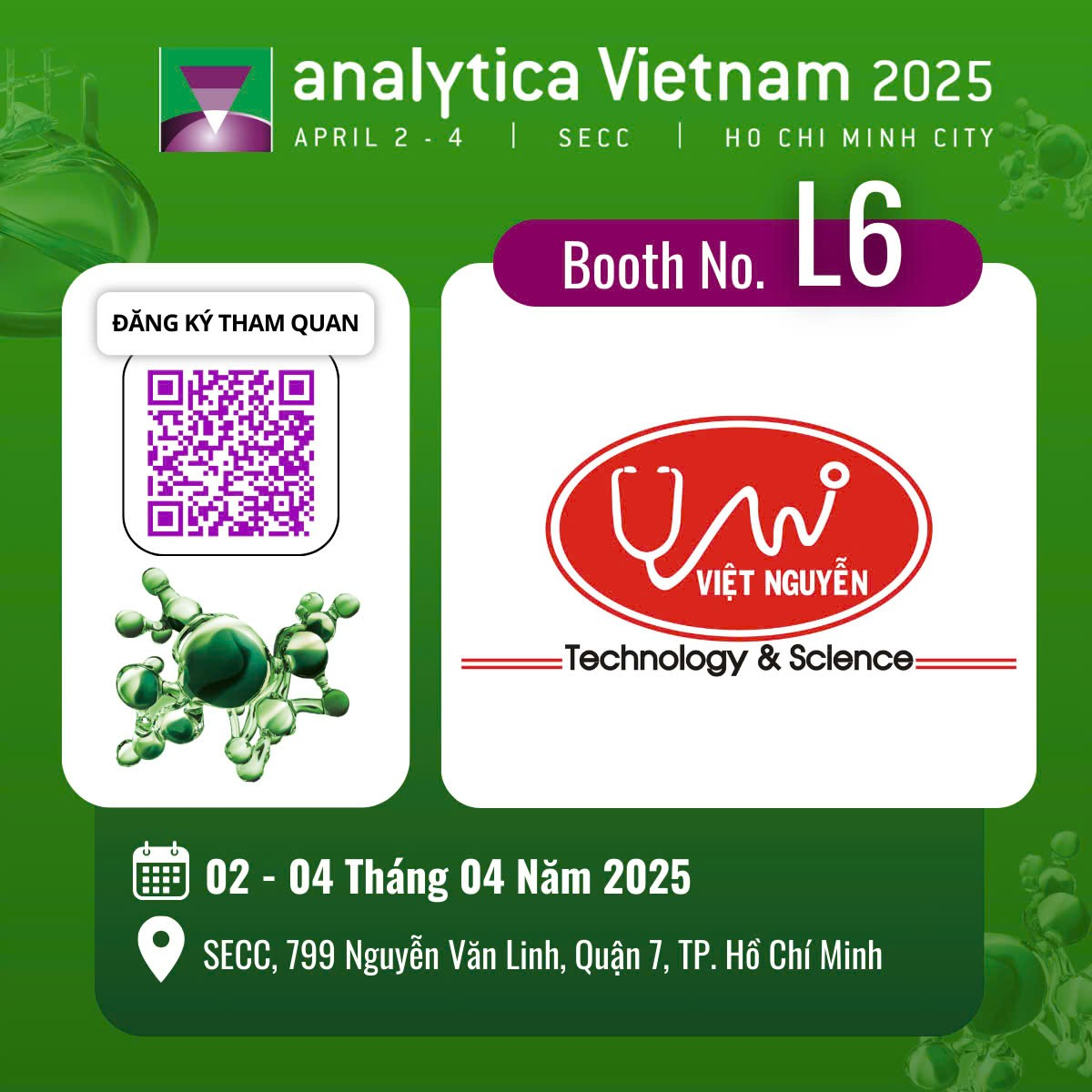 Công ty TNHH Thương Mại Dịch Vụ Kỹ Thuật Việt Nguyễn tham gia triển lãm analytica Vietnam 2025 lần thứ 8 analytica Vietnam 2025 là triển lãm chuyên ngành duy nhất tại Việt Nam trong lĩnh vực Phân tích, Thí... Xem chi tiết